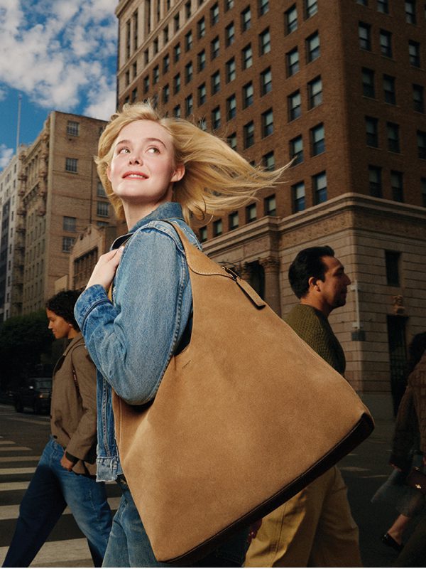 Coach’s Suede Brooklyn shoulder bag (39) is an elegant, minimalist silhouette—with a distinctly New York attitude.