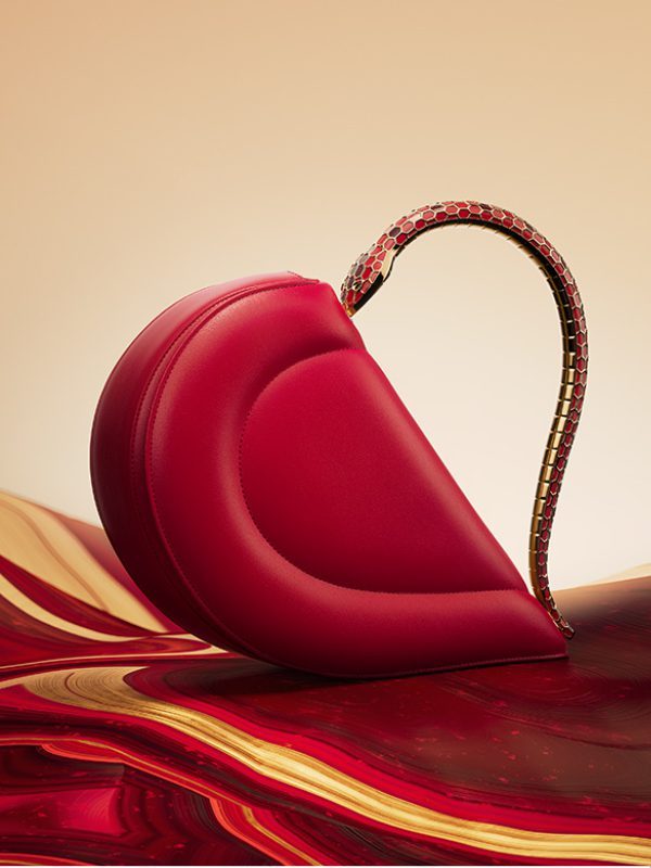 Serpenti Cuore 1968 top handle bag in royal ruby calf leather with royal ruby nappa leather lining.